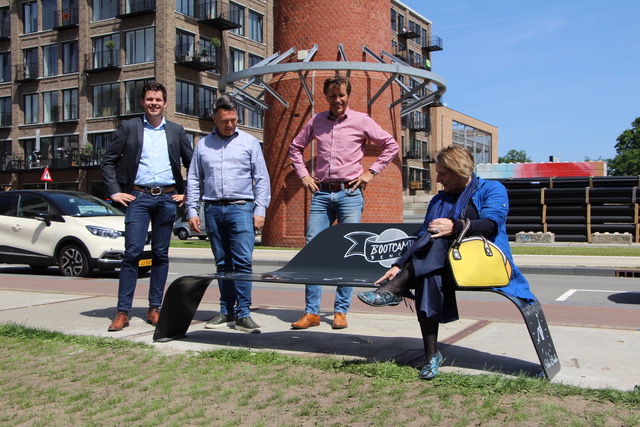 ‘De bank staat hier op deze plek eigenlijk symbool voor een openbare ruimte zoals wij die willen,’ zo lichtte wethouder Schreurs de plaatsing van het bankje toe op deze plek, ‘we willen de openbare ruimte niet gesegmenteerd invulling geven. De openbare ruimte is van en voor iedereen. Of je hier nu wilt bootcampen, spelen, met elkaar wilt vergaderen of alleen zitten. Iedereen moet zich welkom voelen en een eigen invulling kunnen geven. De openbare ruimte is van ons allemaal.’